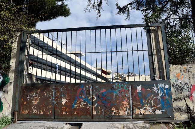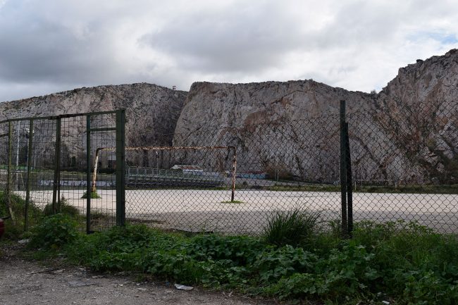 Σπασμένες και σκουριασμένες μπασκέτες μαζί με πεταμένα ογκώδη αντικείμενα. Λόγω έλλειψης χώρων τα παιδιά παίζουν μπάσκετ ακόμη κι εκεί.